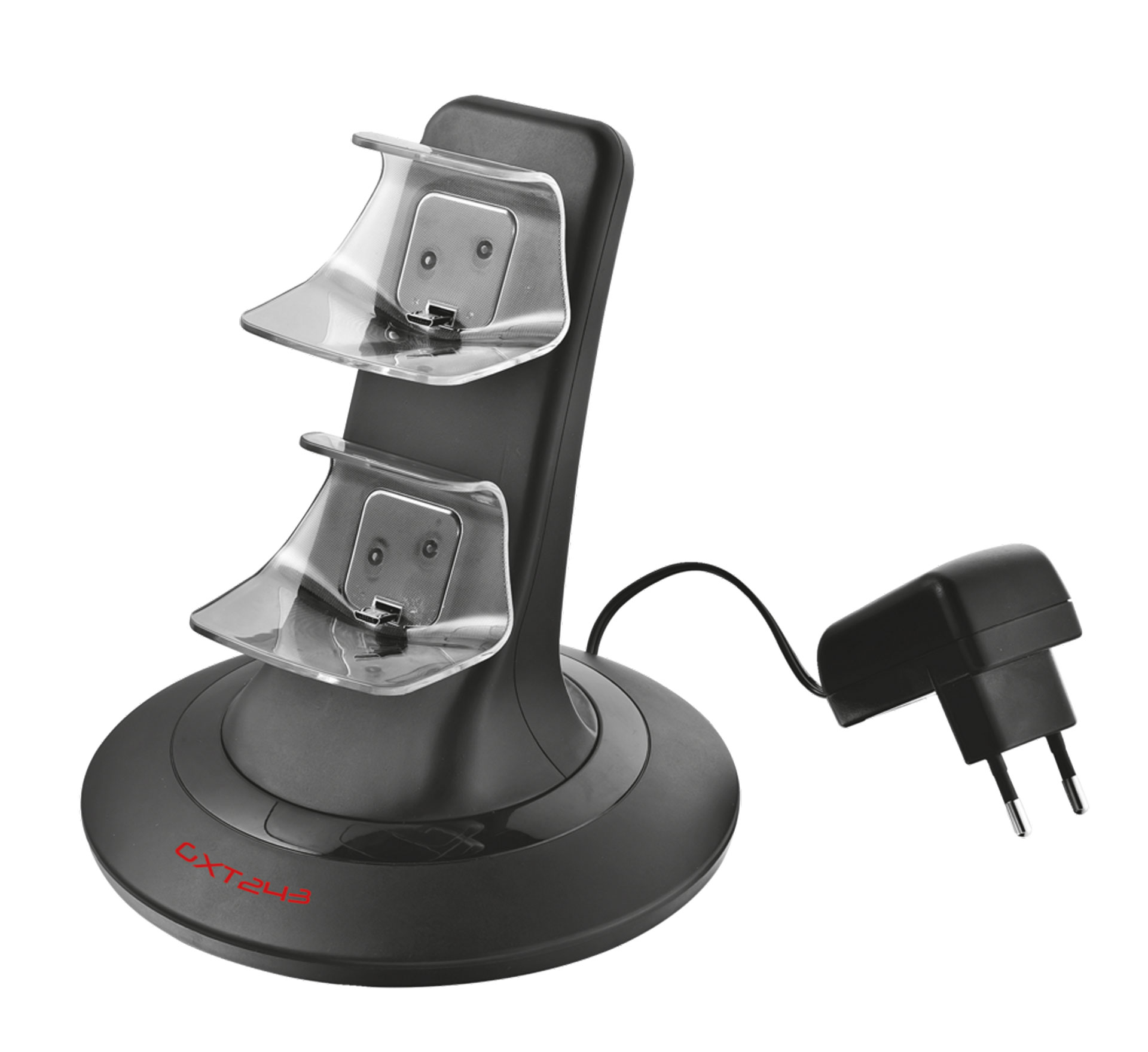 Stacje Trust GXT 243 i Trust GXT 245 pozwalają ładować do dwóch kontrolerów do PlayStation 4 w tym samym czasie. Zasilacz sieciowy pozwala na zasilanie padów bez konieczności włączania konsoli. Stacje są świetnym rozwiązaniem dla osób ceniących sobie estetykę, ponieważ pozwalają na przechowywanie kontrolerów w jednym miejscu bez rozrzucania ich po całym pokoju.