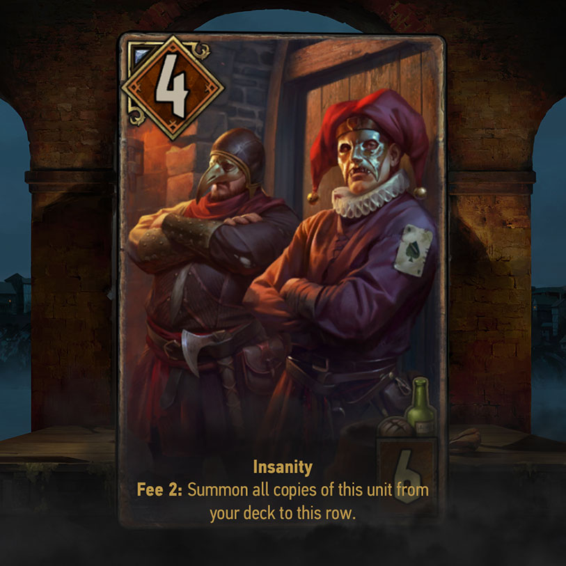 I w końcu… niektóre karty, jak Kasynowi Wykidajła, są po prostu inne. Ich Niepoczytalność sprawia, że mogą użyć swojej umiejętności nawet jeśli nie posiadasz wystarczającej liczby Koron do pokrycia Opłaty. Jednakże, cena zostanie pobrana w naturze — aktywowana jednostka otrzyma obrażenia równe liczbie brakujących Koron.