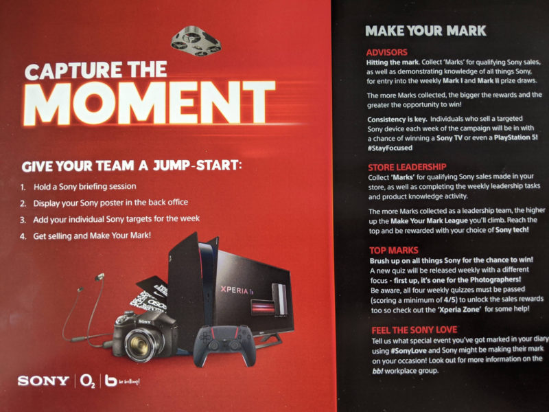 Bywalec ResetEra o pseudonimie BarrBarr opublikował na forum fotografię rzekomej ulotki ze sklepu, w którym pracuje. Sklep miał niedawno otrzymać materiały promocyjne, na których widnieją różne urządzenia produkcji japońskiego przedsiębiorstwa. Obok aparatu i telefonu Xperia na ulotce można zobaczyć PS5 w czarnym wydaniu.