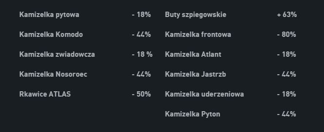 - Zmieniono balans kamizelek inżyniera: punkty pancerza kamizelki przeciwsnajperskiej i kamizelki płytowej zredukowano o 15 pkt.; punkty pancerza kamizelki Komodo zwiększono o 10 pkt.; kamizelka inżyniera watażki zapewnia teraz o 10% większą ochronę przed wybuchami, ale odnawia tylko 4 punkty pancerza (zamiast 8).