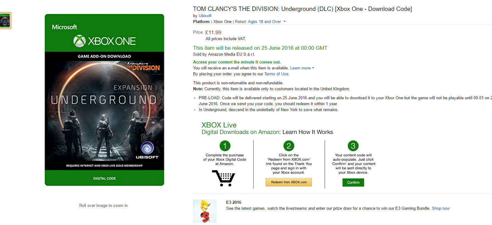 Nieoficjalnie wszystko jednak wiadomo, dzięki niemieckiej oraz brytyjskiej stronie Amazon. Sklep opublikował kartę dodatku Podziemie, z której wynika, że posiadacze konsoli Xbox One będą mogli zacząć pobierać pliki z DLC na dyski twarde od 25 czerwca. Data premiery dodatku została natomiast ustalona na 28 czerwca, czyli trzy dni po udostępnieniu opcji pre-load.