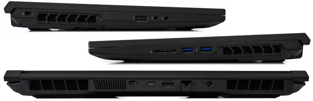 Producent wykonał też dobrą pracę, rozmieszczając na krawędziach laptopa kolejne porty. Ich liczba i rodzaje są w mojej opinii optymalne. Niczego nie brakuje i wszystko mamy pod ręką. I tak z lewej strony mamy złącze Kensington Lock, jeden port USB 2.0 (typu A) oraz dwa złącza 3,5 mm audio jack – po jednym dla słuchawek i mikrofonu. Prawa strona to kolejne najczęściej chyba użytkowane złącza, a więc pozostałe dwa porty USB (tym razem już w wersji 3.0). Co ciekawe – nie zabrakło tu także czytnika kart pamięci SD. Mała rzecz, a cieszy. Tylna krawędź oferuje porty, do których sięga się dużo rzadziej, a więc złącze zasilania, złącza wideo HDMI i mini DP, oraz złącze sieciowe RJ45. No, jest tu jeszcze pojedyncze gniazdo USB-C, które chętniej widziałbym na lewym bądź drugim boku, ale jak widać, nie można mieć wszystkiego. Na krawędzi frontowej nie znajdziemy niczego ciekawego, jako że nawet diody informujące np. o podłączonym zasilaniu umieszczono nad klawiaturą.