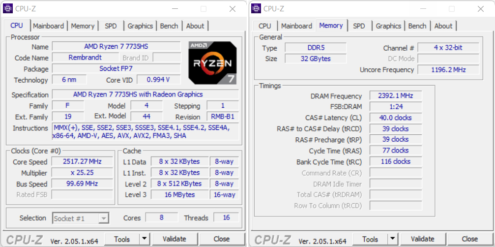 | Procesor | AMD Ryzen 7 7735HS (8 rdzeni, 16 wątków) |