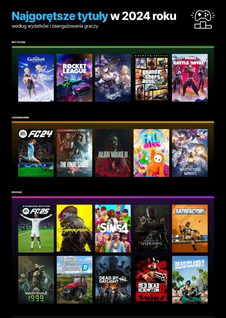 Kolejną ważną i zarazem godną uwagi statystyką jest dzienna liczba aktywnych użytkowników (DAU), która wyniosła w 2024 roku 37,2 miliona. Jest to więc kolejny rekord dla platformy Epic Games.