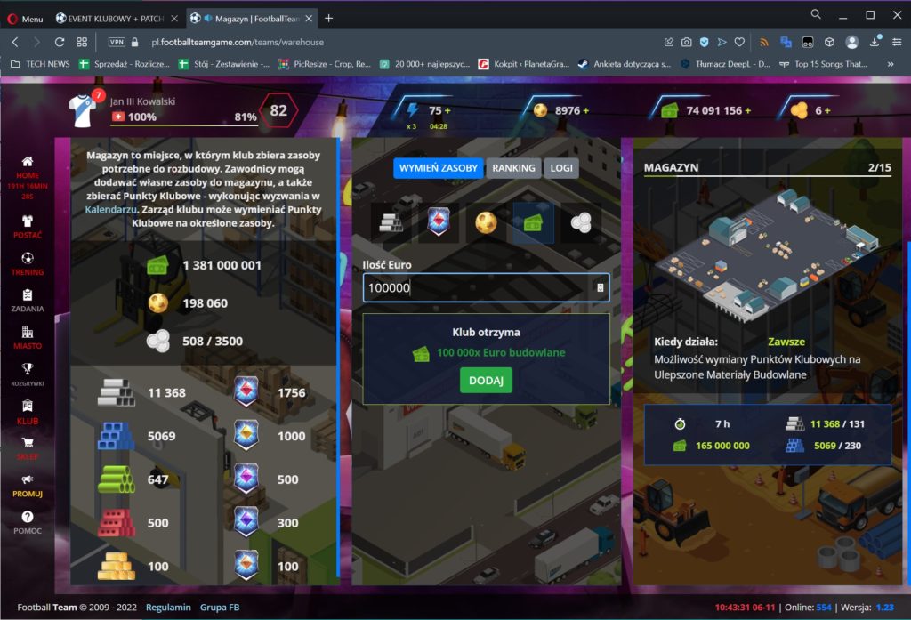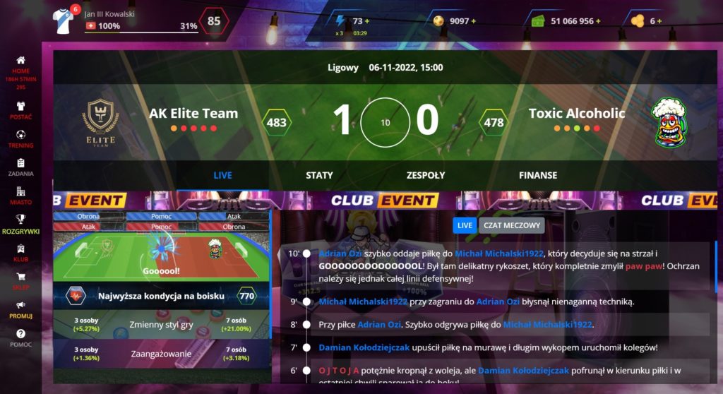 Jak widzicie, FootballTeam nieustannie się rozwija i nie chodzi tylko o cykliczne eventy takie jak np. trwający obecnie „event klubowy”, ale także o cyklicznie wprowadzane do gry nowości. Tym razem gracze otrzymali m.in. przebudowany, jeszcze bardziej intuicyjny i realistyczny dział związany z zarządzaniem klubem oraz zaawansowane udźwiękowienie, które sprawia, że gra nam się już tylko przyjemniej. Jak już wspomniałem, wyczerpujące informacje na temat patcha 1.23 oraz eventu klubowego znajdziecie wchodząc pod ten link, ja jednak zachęcam również do samodzielnej eksploracji tych ciekawych nowości!