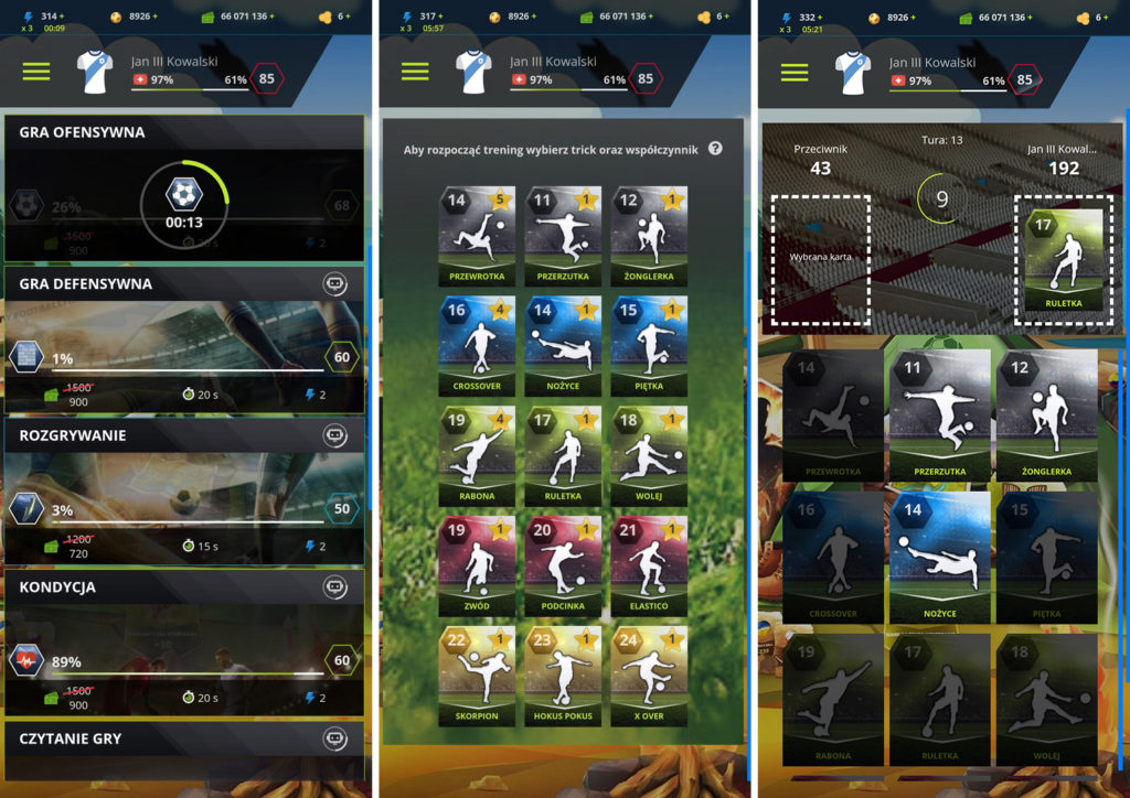 Nie myślcie sobie jednak, że będzie to zadanie proste. W FootballTeam zabawa polega na ciągłej pracy nad rozwojem naszego sportowca. Przeklikując przez kolejne okna interfejsu gry, będziemy między innymi wysyłać zawodnika na treningi, w którym rozwija się umiejętności defensywne, rozgrywanie czy kondycję. W międzyczasie można też wskoczyć na wyższy poziom z trikami jak przewrotki, podcinki czy przerzutki, by następnie pojedynkować się na nie z innymi graczami po sieci. Ale choć treningi rozwijają zawodnika, to kosztują. Dlatego w FootballTeam przewidziano miejsce także na pracę. Możemy np. wysłać naszego sportowca na boisko w roli podawacza piłek, by w kilka minut zarobił parę „zielonych”.
