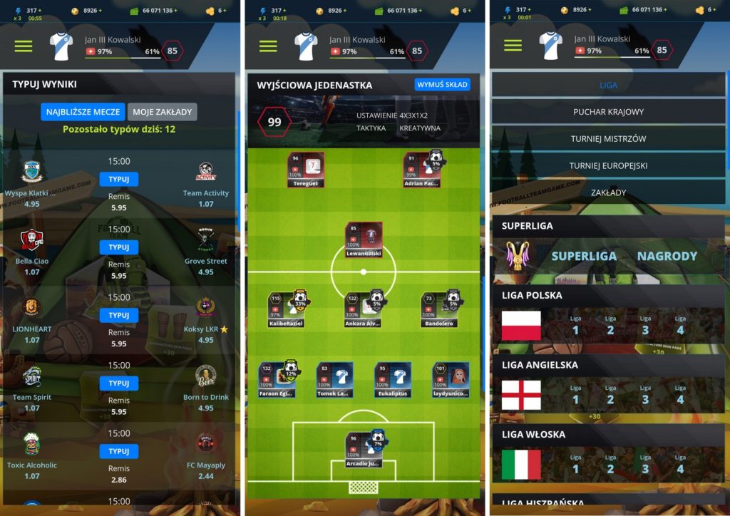 Oczywiście, zanim zaczniemy grać w pierwszym składzie, czy otrzymamy płatny kontrakt upłynie trochę czasu, który to jednak można spożytkować na wielu innych aktywnościach, które proponuje FootballTeam. Mowa chociażby o wspomnianych już zakładach, w których możemy typować wyniki nadchodzących meczy i w ten sposób zarobić łatwe pieniądze. Trzeba przyznać, że serwery gry są nieustannie pełne graczy i to od wielu lat (sezonów), stąd możemy liczyć na nowe mecze co kilka godzin. Co więcej – identycznie jak mecze rozgrywane przez nasz klub, tak samo obserwować możemy rozgrywki innych zespołów. Na przykład tych, których wygraną wytypowaliśmy. Mecze takie opatrzone są komentarzem na żywo (w często dowcipnej, opisowej formie), przez co zabawa w FootballTeam wzbogacona jest o dodatkowe emocje.