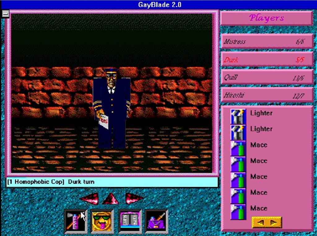 GayBlade to gra z 1992, w której oczyszczamy podziemia z homofobów. Tytuł ma zgrzybiałą grafikę i toporne mechaniki, ale jest jedna rzecz, która zdaje się tu w ogóle nie starzeć.