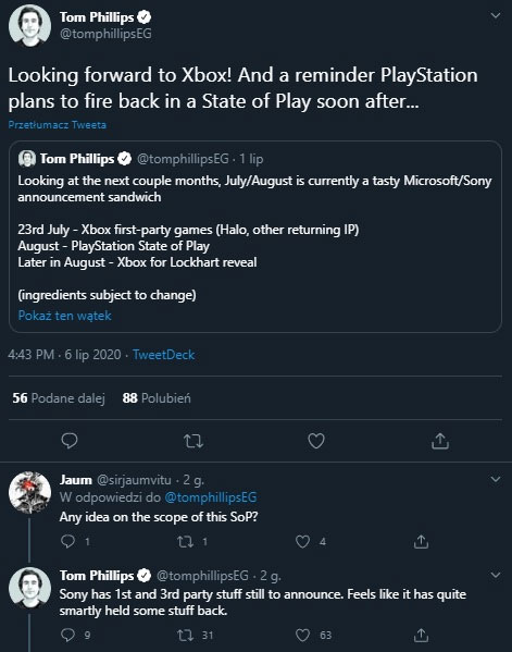 Jak wspomnieliśmy wyżej, Sony ujawni kolejne produkcje na piątkę tuż po pokazie Microsoftu, zaplanowanym na końcówkę tego miesiąca (23 lipca). Amerykanie zamierzają skupić się na grach first-party, zatem w końcu dowiemy się, czy Xbox Series X otrzyma jakieś ekskluzywne tytuły startowe warte uwagi.