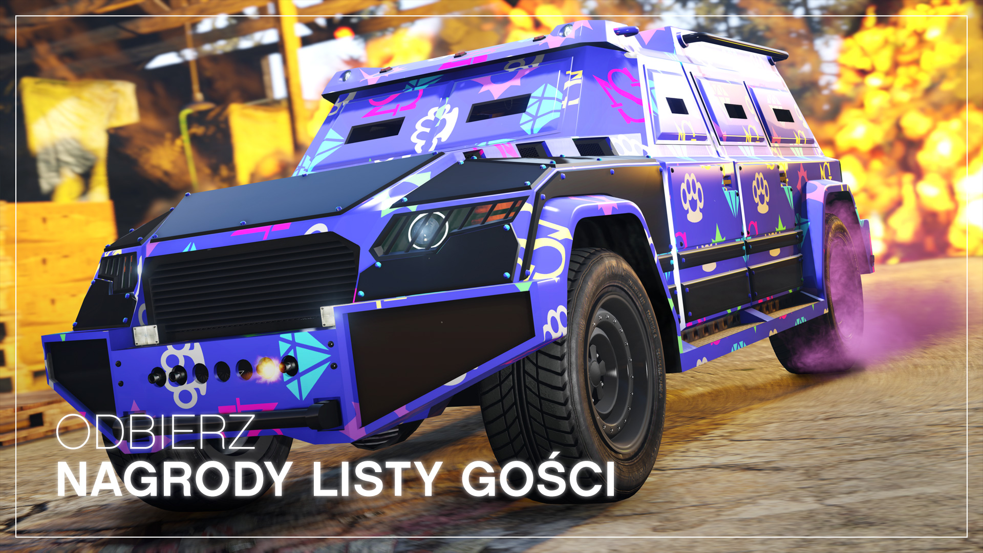 Jak czytamy na stronie Rockstar, są to gratisowe malowania wielokolorowe Sessanta Nove i różowo-zielone morodla HVY Nightsharka oraz Ubermachta Revoltera. Dostępne bezpłatnie w warsztatach zbrojeniowych. Oraz tylko w tym tygodniu goście z listy mogą dodać Nightsharka i Revoltera do swojej floty pojazdów nie ponosząc żadnych kosztów przez cały tydzień. Odwiedź Legendary Motorsport i Warstock Cache & Carry, by odebrać te pojazdy do 13 sierpnia.