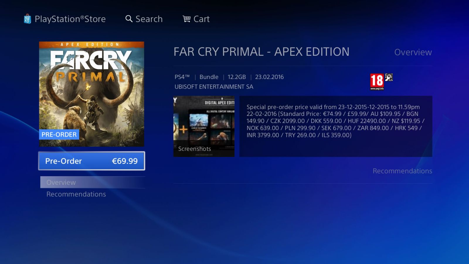 Far Cry Primal – najnowsza odsłona słynnej serii strzelanek od Ubisoftu, zadebiutuje na rynku już 23 lutego. Jak wynika z wpisu w PlayStation Store, nie będziemy musieli martwić się o brak miejsca na dysku (przynajmniej do nadejścia aktualizacji).
