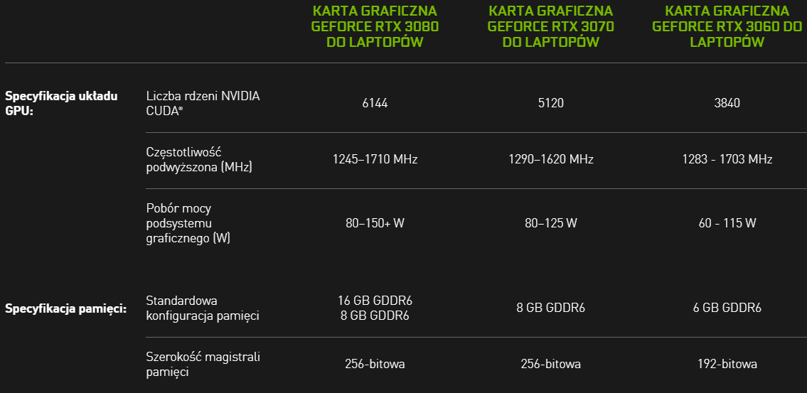 NVIDIA zapowiedziała właśnie RTX 3060, 3070 i 3090 w wydaniach mobilnych. Laptopy wyposażone w rzeczone karty będą prawdziwymi demonami wydajności i nawet najsłabszy z nich (z RTX 3060) będzie o 30% wydajniejszy od PS5.