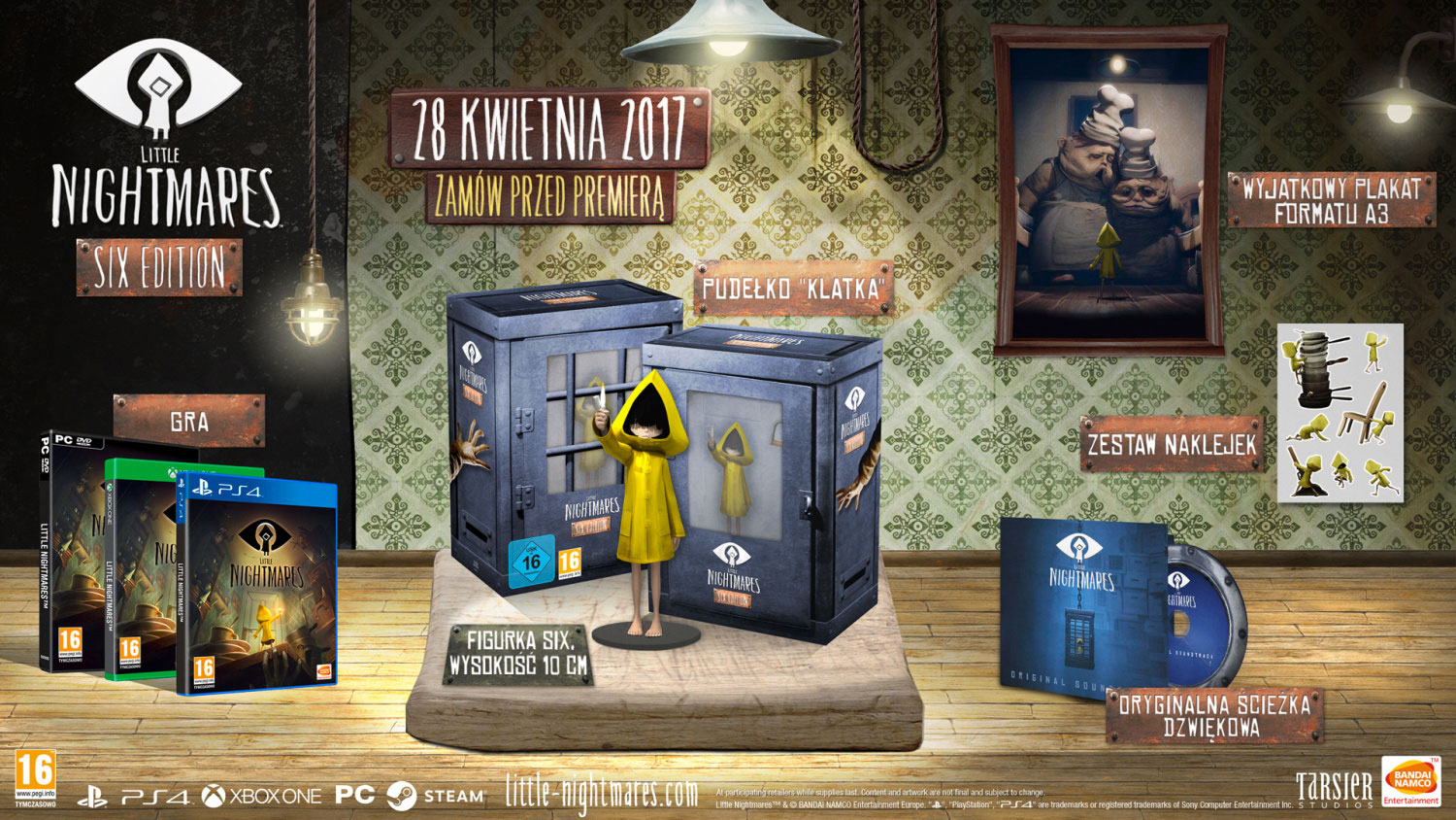Cenega informuje, że do jej planu wydawniczego trafiła gra Little Nightmares. Tytuł ukaże się 28 kwietnia 2017 roku w polskiej (napisy) i angielskiej wersji językowej do wyboru na konsole PlayStation 4, Xbox One oraz komputery PC. Nakład premierowy gry w wersji pudełkowej będzie dostępny do wyczerpania zapasów w specjalnym wydaniu: Little Nightmares Six Edition. Oprócz tego, edycja PC, będzie także dostępna w wersji cyfrowej. Za lokalizację tytułu odpowiada światowy wydawca gry.