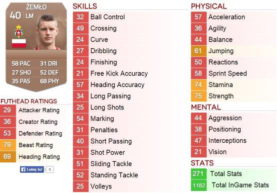 Tak prezentują się statystyki Piotra Żemły w FIFA 15. Sprawiedliwie?