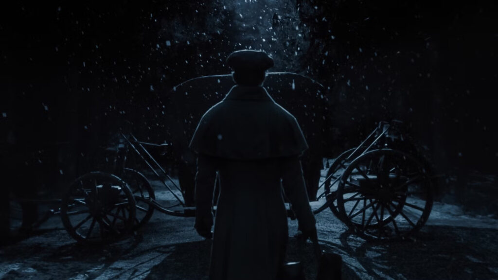 Nosferatu nie tylko wygląda po prostu fenomenalnie (są tu jacyś fani Bloodborne?), ale i brzmi tożsamo. Mroczne, posępne wiktoriańskie uliczki z ludźmi ubranymi w stroje z epoki, wznoszący się pod niebiosa niemal opustoszały zamek czy nawet zaśnieżona rumuńska wioska – wszystko ma tu swój cel, który osiąga stylem. Kadry można byłoby wyjmować z taśmy i drukować na wizytówkach. Eggers chyba prześcignął samego siebie pod tym względem, nie dając nam nawet chwili na oddech.