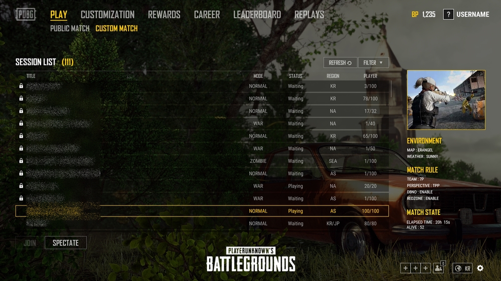 W lobby można wybrać trwający mecz z listy custom games i oglądać go w czasie rzeczywistym.*