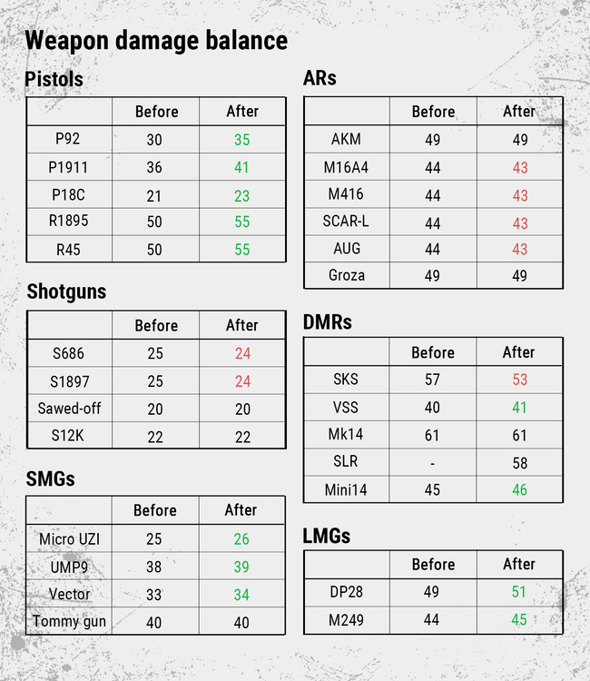 • Lekko zmniejszono obrażenia zadane z broni M16A4, SCAR-L, AUG i M416