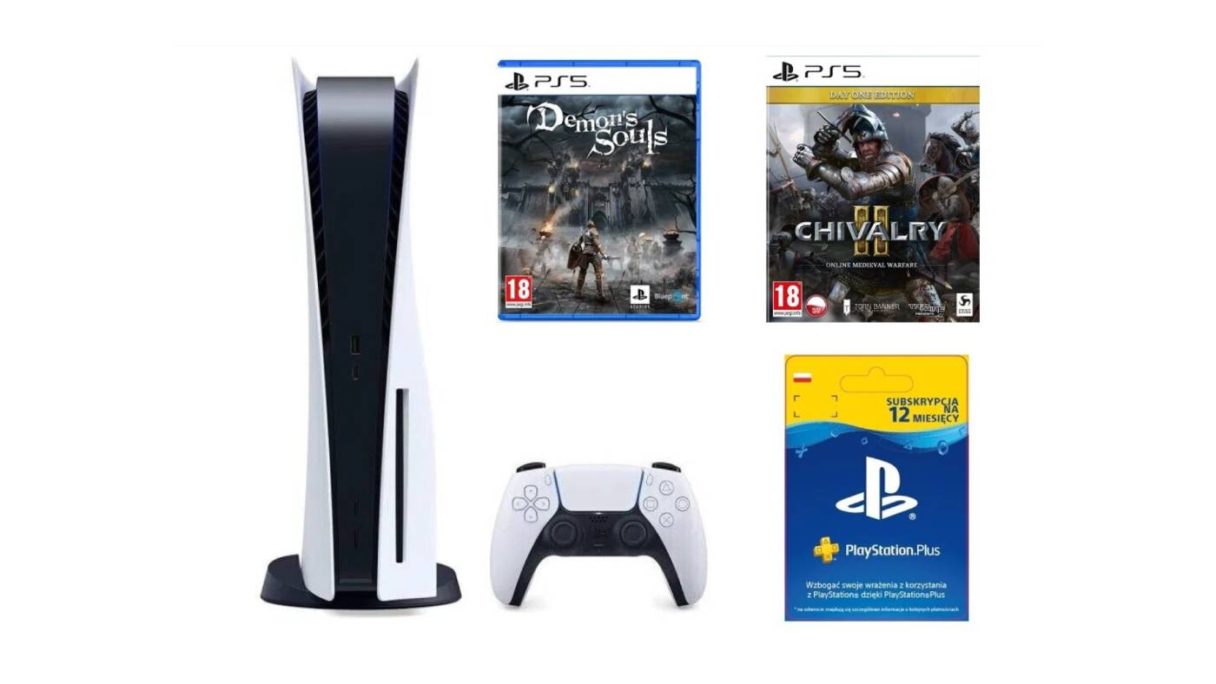 - PlayStation 5 B Chassis + Demon’s Souls + Chivalry II Day One Edition + PlayStation Plus 12 mies. – 2999 zł
