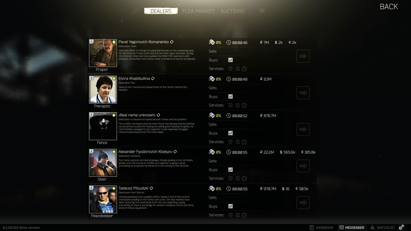 Itemy to nie tylko broń czy apteczki. Znajdziemy tu wodę oraz jedzenie (które nie jest jakieś arcyważne, jednak posilanie się zapobiega zawrotom głowy), sprzęt komputerowy (szczególnie cenny jako towar przeznaczony na handel) oraz inne przedmioty jak np. środek smarujący WD40. Większość z nich będzie także służyła handlowi. Na ten moment kupować oraz sprzedawać możemy u handlarzy, przy czym każdy z nich może levelować, kiedy spełnimy określone wymagania (np. sprzedamy mu daną ilość konkretnego towaru). Na przyszłość planowane są również wymiany towarów między graczami. Każdy z handlarzy dysponuje nieco innym zaopatrzeniem i na przykład Therapist ma do sprzedania przede wszystkim apteczki i antybiotyki (np. Augmentin) a także szyny usztywniające złamania.
