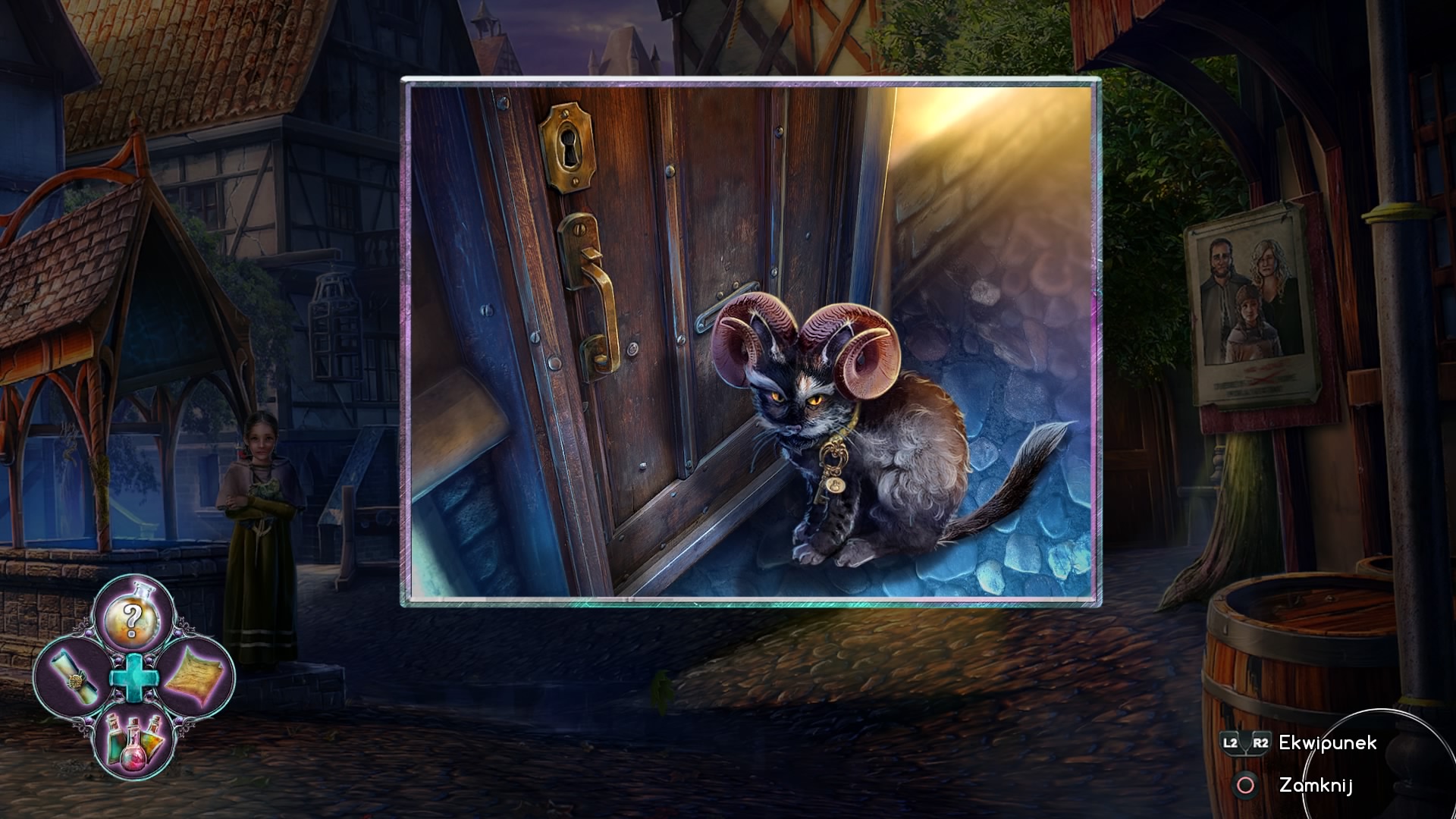 Z pewnością największym specjałem Lost Grimoires: Stolen Kingdom są fragmenty z wyszukiwaniem przedmiotów z podanej listy, dzięki którym dostajemy fabularny gadżet do rozwinięcia fabuły gry. Dla fanów zbieractwa przygotowano ponadto małe urozmaicenie, polegające na znajdywaniu rzeczy poprzez krótkie zagadki typu „Od pieniążków długo tyje, zanim młotkiem ją rozbijesz”, „Strasznie wielkie ma zębiska, światłem wabi koło pyska” czy „Warkoczy plecie, czas odmierza, pewnie czeka na rycerza”. Jak widzicie, nie są one zbyt wymagające (ciężej odnaleźć sam przedmiot będący odpowiedzią na zagadkę), jednak muszę szczerze przyznać, że był to jeden z najlepszych fragmentów na „główkowanie” w tej produkcji. Równie ciekawie wypadły inne mini-gry, jak szukanie drogi przez miasto za pomocą współrzędnych, czy klikanie odpowiednich wizerunków postaci w interaktywnej historyjce. Autorzy porozmieszczali kilkanaście znajdziek – podobizn ptaków, rozsypanych po różnych lokacjach królestwa.