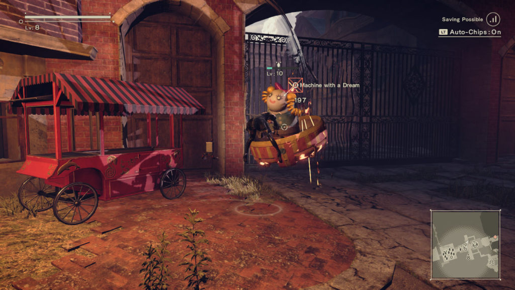 To w języku autorów oznacza, że na początku gry nie można zapisać jej w ogóle. Zanim zyskamy pierwszą możliwość zapisu, musimy dotrwać do momentu, w którym 9S próbuje nas ratować i sam zostaje ranny – co ma miejsce około 40 minut po rozpoczęciu zabawy. Z jednej strony to dobrze, bo to w końcu niewiele ponad pół godziny (mogło być gorzej), natomiast z drugiej, grając po raz pierwszy byłam przekonana, że przebywam w wirtualnym świecie już na tyle długo, że stan gry powinien się sam zapisać (i to na moje standardy już ze dwa razy), więc wyłączyłam komputer i poszłam spać. Następnego dnia włączyłam NieR, a wtedy ciąg znaków interpunkcyjnych wydobył się z moich ust.