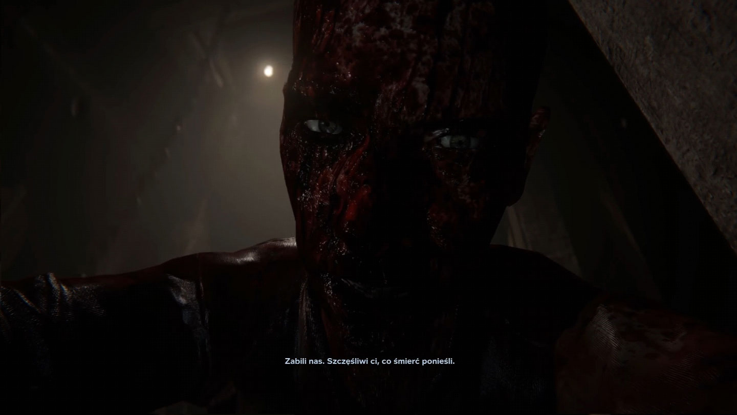 Na szczęście zabiegów typu jump scare nie doświadczymy w Outlast 2 zbyt wielu, a jeśli już się pojawią, to nie są wciśnięte do gry na siłę. Niestety, niektóre zwroty akcji są do bólu przewidywalne. Idąc mostem pomyślałam – „ten most na pewno się zawali”. I co? Zawalił się. Jednak większość gry ma świetną atmosferę, budowaną naturalnie. Ot, tu coś przebiegnie, tam jakiś cień na ścianie, tu wisielec, tam wisielec. Sama przyjemność. Dodatkowo może nagle załamać się pod nami podłoga… Generalnie ziemia wali się w Outlast 2 dość często. Jeśli spodoba się Wam klimat miasteczka, w którym rozgrywa się gra, spodoba się Wam również opowiadanie H.P. Lovecrafta pod tytułem „Widmo nad Innsmouth”, gdzie bohater pod osłoną nocy ścigany jest przez wszystkich mieszkańców szkaradnej osady. Sama architektura budynków w Outlast 2 bardzo przypominała mi Salem okresu, gdy paliło się tam czarownice. Rozpadające się płoty i odrapane domy bardzo dobrze komponują się z całą resztą.