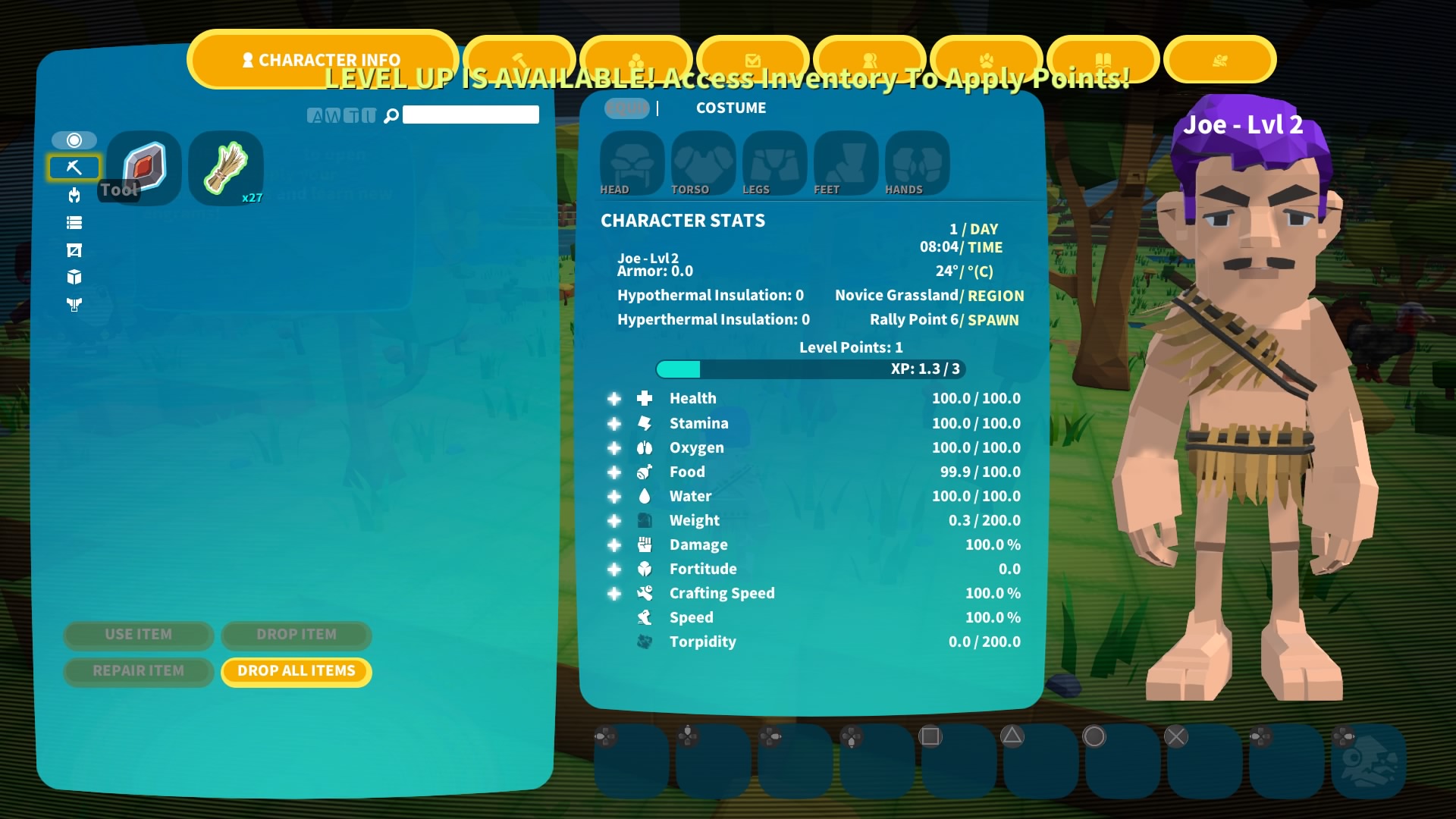 W tym wszystkim warto też pamiętać, że PixARK, jako swoisty spin-off ARK: Survival Evolved, jest solidnym survivalem i wymaga od nas też zaspokajania podstawowych potrzeb bohatera, o czym wspomniałem już wyżej. Mamy kilka statystyk takich jak poziom życia, głodu, pragnienia, udźwigu, siły czy nawet dostępnego tlenu. Sporo tego, jak na prostą kolorową grę o stawianiu klocków, prawda? W tym też tkwi siła PixARK, który oferuje szerokie pole do zabawy, gdzie tak naprawdę od nas wszystko zależy.