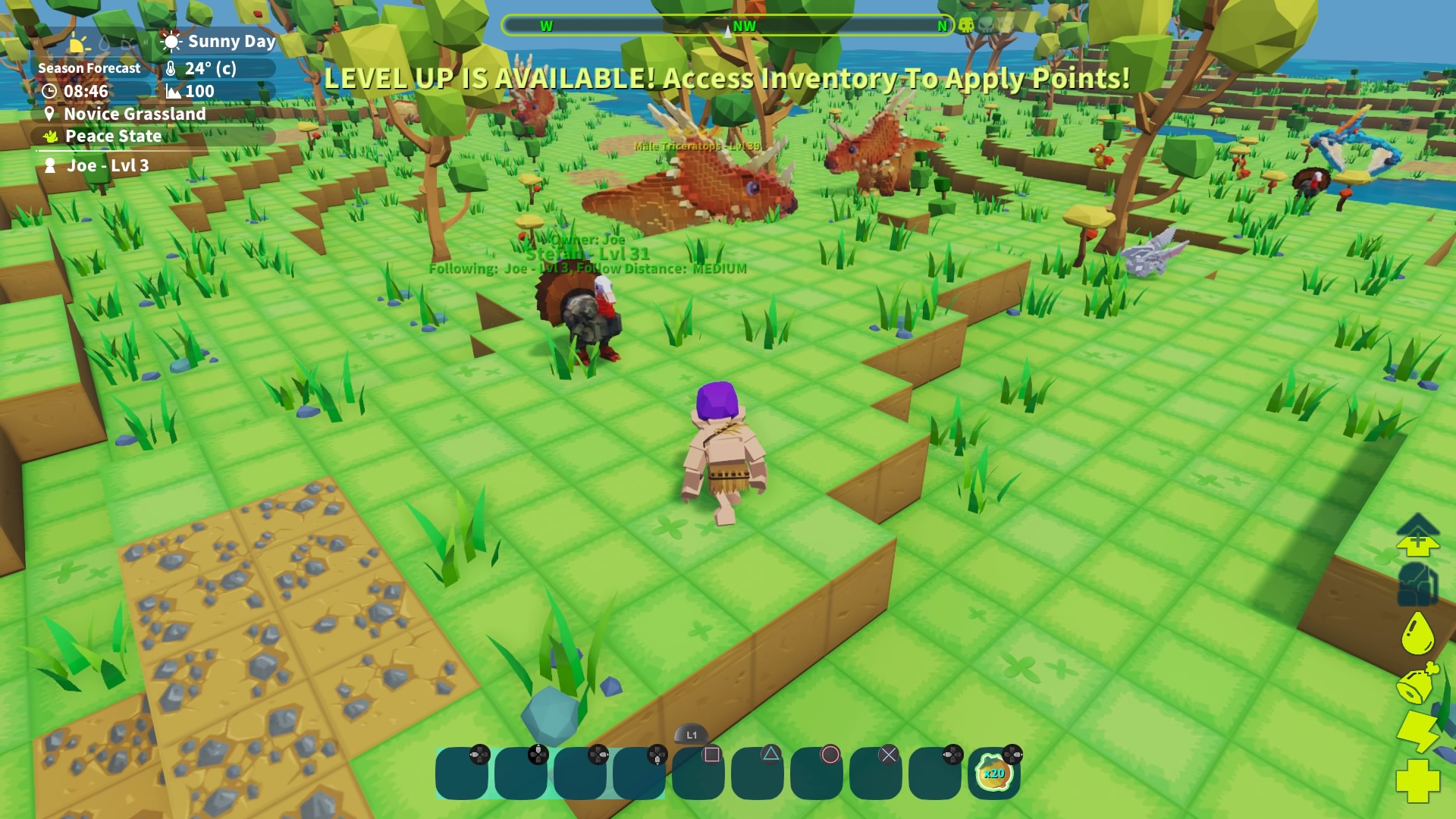 Poruszanie się postacią i pozyskiwanie surowców niezbędnych do tworzenia przedmiotów oraz rozbudowy bazy, odbywa się w podobny sposób co w wymienionych już grach z tego gatunku. Mamy widok trzecio i pierwszoosobowy. W przypadku perspektywy percepcji świata „z oczu”, autorzy dodali możliwość zerkania na mapę danego proceduralnie stworzonego świata, która odkrywa się wraz z postępami w naszej eksploracji. Mapa ta jest pomocna z dwóch ważnych powodów – zaznaczone są na niej questy do wykonania i typy terenów, co w przypadku tego drugiego pomaga w odnajdywaniu specyficznych typów surowców. Same zadania są dość zróżnicowane – raz obierzemy za cel wytresowanie pewnego zwierzaka, kiedy indziej z kolei będziemy musieli stworzyć konkretny przedmiot czy coś zbudować.