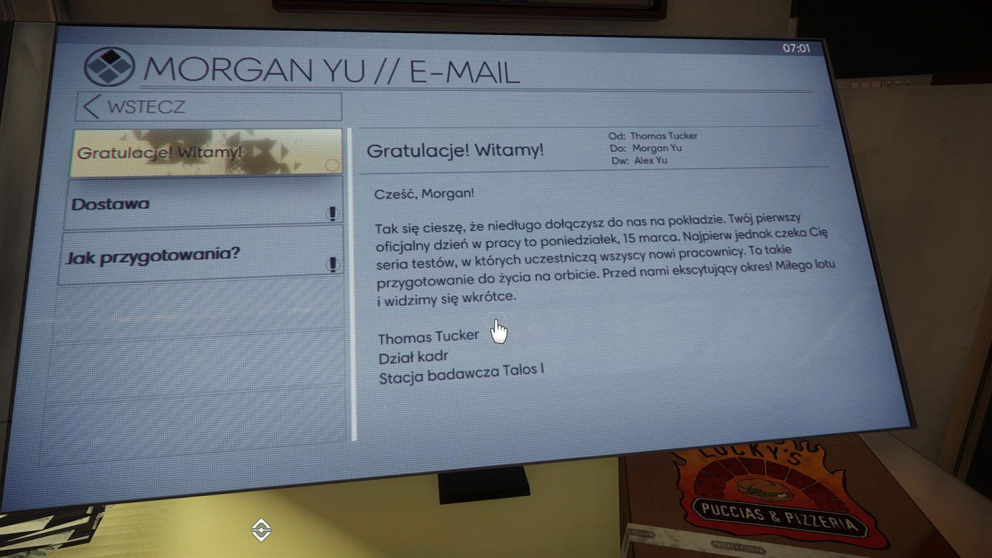 Pierwsze zwiastuny mówiły o Prey niewiele ponad to, że będzie to pierwszoosobowa strzelanka, a swe pociski kierować będziemy w kierunku oślizgłych, krabopodobnych istot spoza Ziemi. Dopiero kolejne informacje oraz trailery zaczęły mocniej intrygować, a gracz słusznie zaczynał podejrzewać, że dzieło Arkane Studios będzie czymś lepszym niż kolejny FPS z kosmitami w tle. A pisząc już o trailerach muszę w tym miejscu zaznaczyć, że jak to zazwyczaj bywa, gra jest mniej energiczna, niż pokazują to właśnie zwiastuny. Kiedy już zaakceptujemy ten fakt, można przejść do lepszych wieści. Bardzo dobrą informacją jest to, że w grze sporo jest elementów RPG, które to kojarzyły mi się z serią Deus Ex. Elementy te nie są w grze może jakoś mocno wyeksponowane, mimo to cieszą, gdyż znacznie wzbogacają fabułę. Wszystko za sprawą informacji, których możemy się doszukać na komputerach pracowników stacji Talos I. Aby dostać się do maili, należy znać hasła do komputerów, a hasła te rozsiane są w pobliżu, np. w formie karteczki samoprzylepnej na ekranie monitora. Ale nie zawsze będzie tak łatwo. Czasami hasło jest bardzo trudno dostępne i tu wchodzi w grę zabawa hakowaniem. Ale o umiejętnościach bohatera, które zyskujemy dzięki neuromodom, będzie w dalszej części recenzji.