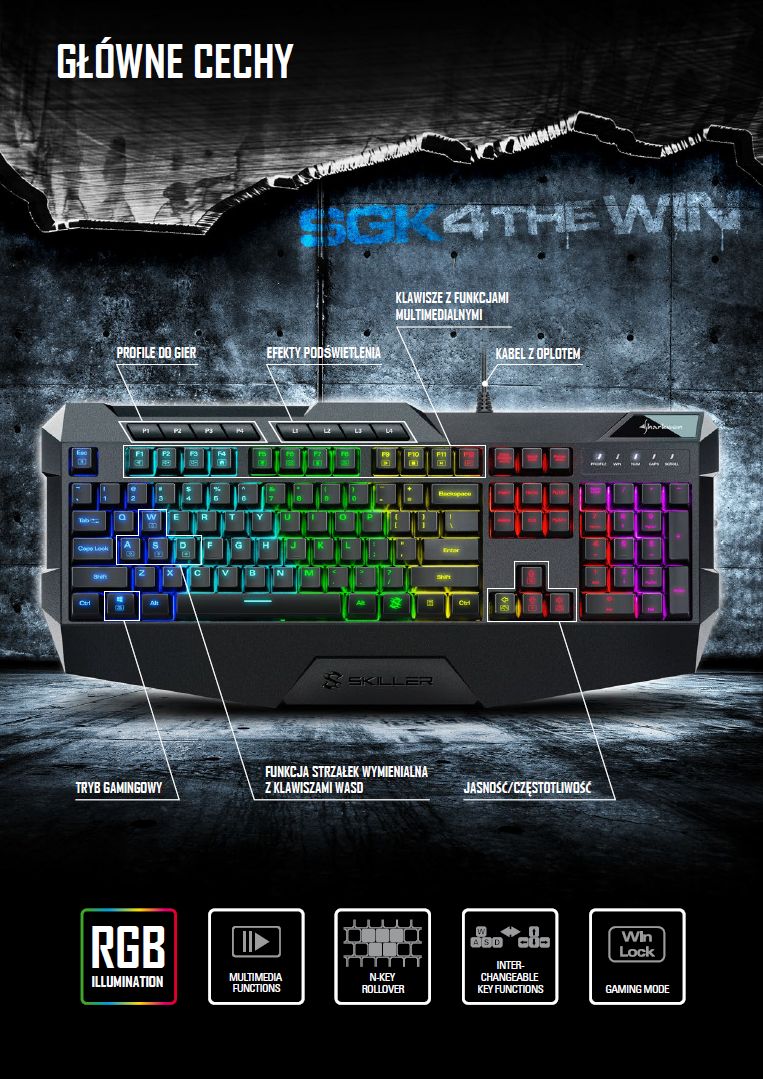 Nazwa: Klawiatura dla graczy Sharkoon SKILLER SGK4 RGB
