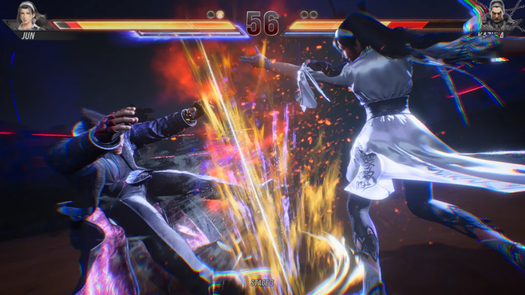 Wtedy na scenę wkracza Jin, który ponownie skupi wokół siebie uwagę wszystkich. Już na początku przyjdzie mu stoczyć walkę ze swoim ojcem, podczas której zrozumie, że z niewiadomych powodów zatracił swoją siłę. W jej odzyskaniu nie będzie jednak sam, bo z pomocą przyjdzie mu wiele znanych nam twarzy. Choć bohaterów w grze jest naprawdę wielu (aż 32), to na przestrzeni krótkiego trybu fabularnego zagwarantowano im naprawdę niezły czas ekspozycji. Oczywiście nie sposób skupić się na każdej postaci z tak licznego grona, ale wieloletni fani z pewnością będą zadowoleni.