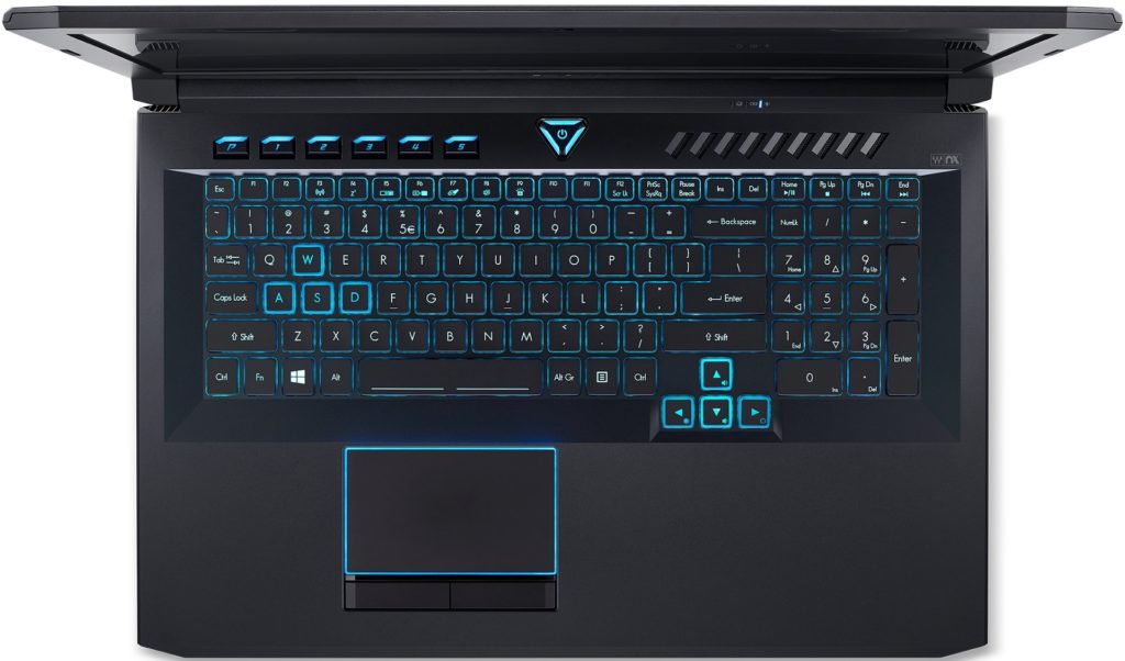 Predator Helios 500 otrzymał pełnowymiarową (a więc znajdziemy tu także sekcję numeryczną), wyspową (każdy klawisz odseparowany od pozostałych) i podświetlaną klawiaturę – fabrycznie na niebiesko, jednak kolor ten można zmienić za pomocą oprogramowania Predator Sense. Klawiatura ma tak naprawdę 4 strefy podświetlenia, którym można przypisać dowolny kolor z palety RGB, niestety oferuje także tylko jeden stopień jasności. Muszę też przyznać, że choć wspomniane podświetlenie jest ładnie wysycone, to niezbyt regularne. Ładnie wygląda tu w sumie podświetlenie touchpada czy klawiszy makro oraz włącznika, jednak pozostała część iluminacji jest raczej przeciętna i nie zrobiła na mnie wrażenia. Z pewnością to przez wzgląd na zbyt niski poziom jasności. Co zaś do wygody i kultury użytkowania to należy wiedzieć, że klawisze są niezwykle ciche – nie ma tu tego charakterystycznego, laptopowego „klekotania”. Charakteryzuje je także dość wysoki skok, co przekłada się na dłuższy czas odpowiedzi (powrotu do pozycji pierwotnej). Gracz, który preferuje „granie dla grania”, nie zaś dla zajmowania wysokich rankingów nie będzie na nią narzekał. Jednak osoby aspirujące do miana zawodowców i tak raczej podłączą pod Predatora zewnętrzną klawiaturę mechaniczną. Generalnie jednak rzecz biorąc, na wbudowanej konstrukcji pracuje się przyjemnie, jest naprawdę sporo miejsca na wygodne położenie nadgarstków. Helios 500 ma także coś, czym nie pogardzi żaden gracz – 5 klawiszy makro, które ostatecznie przybierają formę aż 15 klawiszy (są trzy tryby – wszystko do ustawienia w Predator Sense). Za to należy się duży plus, podobnie jak za touchpad. Nie przyoszczędzono na nim wiedząc przecież, że grając i tak podłączymy do zestawu mysz pod USB. Mimo to płytka jest przyjemnie śliska, bardzo responsywna, ładnie podświetlona (przez co wyraźnie oddzielona od pozostałego obszaru roboczego), ale przede wszystkim – wzorowo wyprofilowana. Nie na tyle głęboka, by drażnić swoim spadem, ale i nie na tyle płaska, aby zgubić ją pod opuszkami. No i praca LPM i PPM to już bajka – przyciski chodzą niesłyszalnie i równie miękko co klawisze klawiatury.