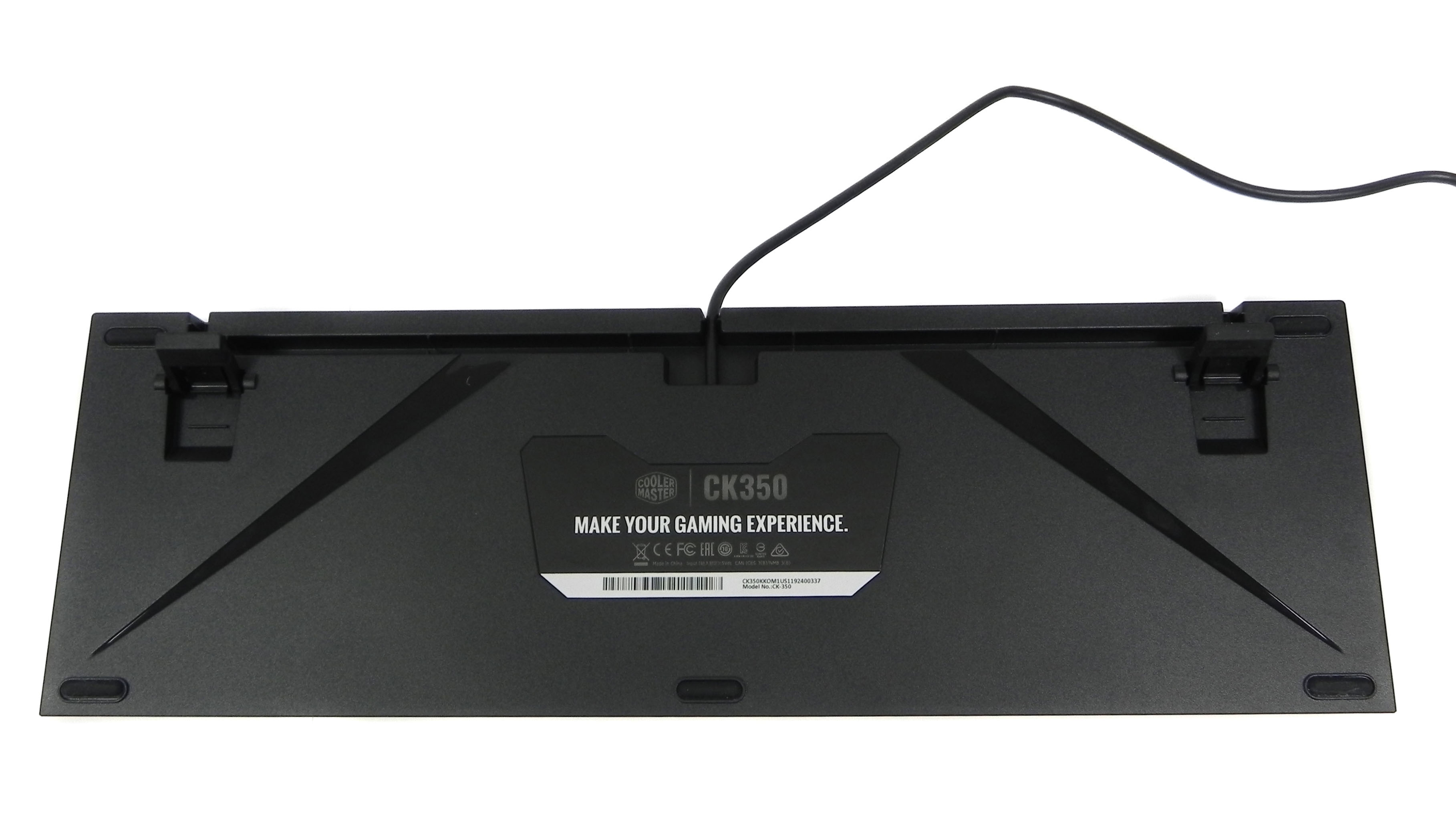 Więcej ekstrawagancji, w porównaniu do górnej części, znajdziemy na spodzie klawiatury, gdzie oczy cieszy lekkie, wieloboczne wgłębienie z naklejką producenta oraz dwa wcięcia z lustrzanym gładkim plastikiem. Na stabilność urządzenia na blacie biurka wpływa bez wątpienia pięć podłużnych gumowych wysepek oraz dwie podpórki wykonane z plastiku i oplecione w połowie gumą. Pod spodem znajduje się również zagłębienie do chowania kabla USB, wraz z trzema kanałami do jego wyprowadzenia – po prawej i lewej stronie, oraz centralnie na środku. Dobrze mieć wybór w tym aspekcie, tym bardziej, że każdy gracz ma inne warunki do grania i często takie detale zwiększają komfort użytkowania.