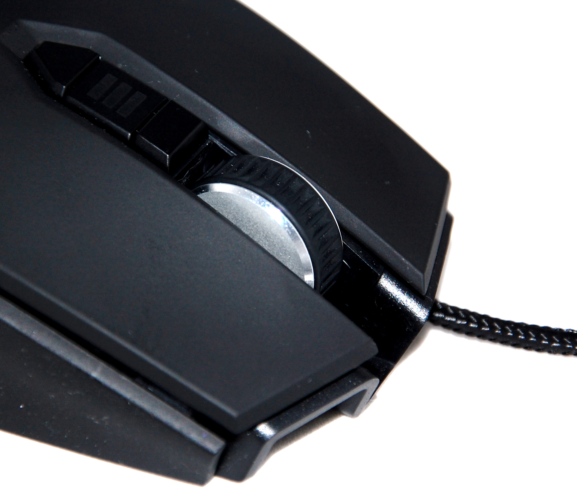 Corsair Raptor M45 ma siedem w pełni programowalnych przycisków. Z tego względu, nie jest to myszka typowo dla fanów sieciowych RPG, jak chociażby testowana wcześniej Razer Naga lub Logitech G602, które mają na lewej krawędzi od kilku do nawet kilkunastu dodatkowych przycisków. To jednak nie oznacza, że M45 nie nadaje się do takich gier. Po prostu trzeba się liczyć z tym, że przypiszemy nieco mniej skrótów przeznaczonych do różnego rodzaju miksturek czy czarów. Testowana myszka ma tradycyjne dwa przyciski lewy i prawy, a także na lewej krawędzi dwa dodatkowe. Konkretne funkcje możemy przypisać również pod wciskanym scrollem. Zaraz za nim znajdziemy dwa kolejne przyciski, które służą do zmiany DPI w locie. Jeden z trzech poziomów DPI oznaczany jest za pomocą małego wyświetlacza pomiędzy tymi przyciskami. To bardzo dobre rozwiązanie, dzięki czemu od razu widzimy, z którą konfiguracją mamy do czynienia. Można przyczepić się trochę do tego, że przycisk dolny znajduje się dość daleko od rolki, przez co jest trudno dostępny, ale biorąc pod uwagę, że nie korzystamy z niego co kilkanaście sekund, nie jest duża wada. [gallery columns="5" ids="23687,23688,23690,23692,23693"] Niestety muszę w tym momencie przyczepić się do scrolla, który po kilku dniach użytkowania myszki, zaczął dość głośno chodzić. Nie wydaje co prawda piskliwych dźwięków jak niektóre tańsze myszki, ale mimo wszystko jest wyraźnie głośniejszy od konkurencyjnych produktów. Nie mam jednak żadnych zastrzeżeń co do jego wykonania, ponieważ został zrobiony z metalowego tworzywa, sprawiając wrażenie solidnego.Wygląd