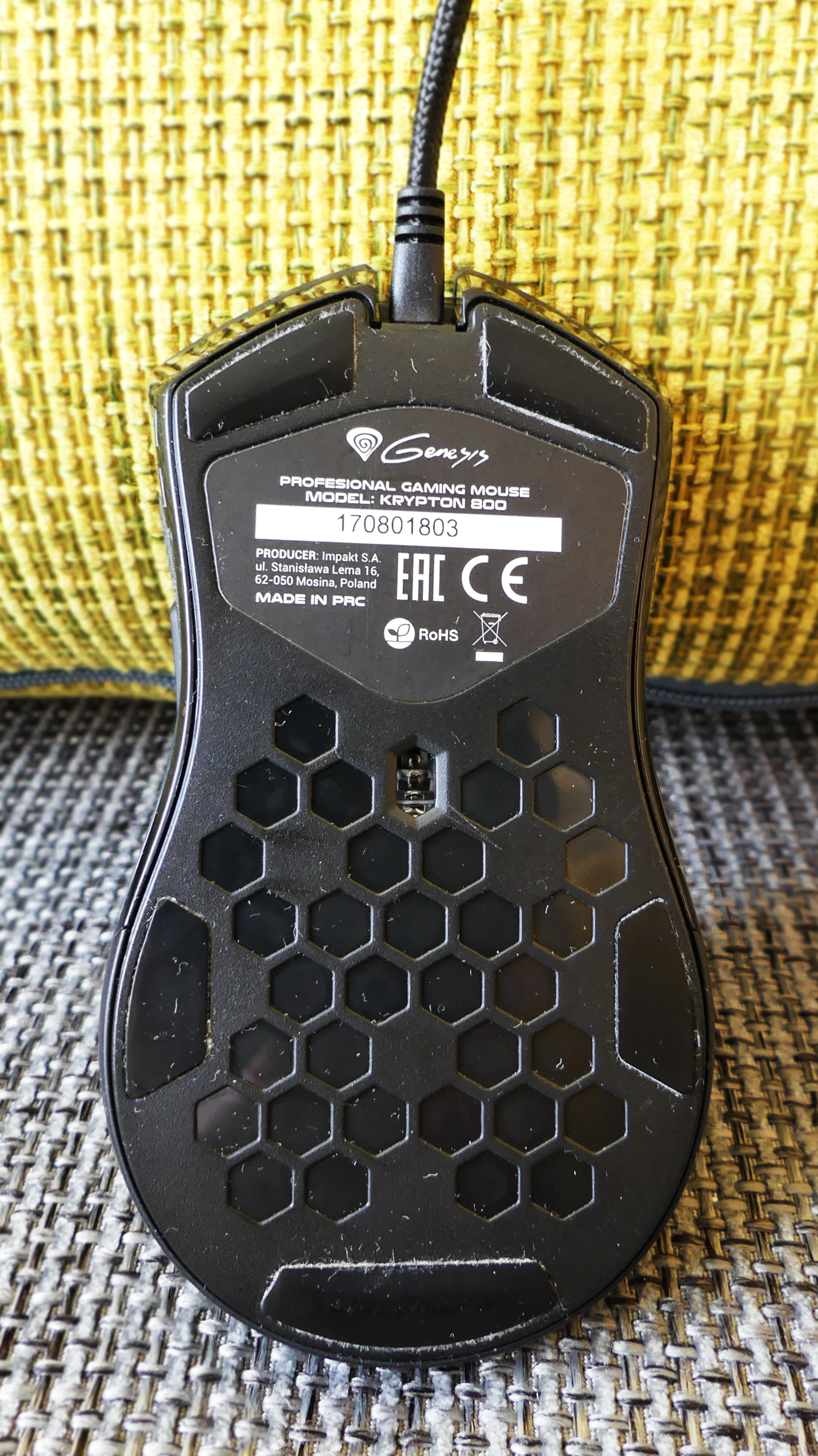 Na szczęście prócz tych mankamentów przez naprawdę małe „m” nie można doczepić się ani do spasowania elementów, ani do jakości plastiku. Nie sposób nie wspomnieć także o ważnym elemencie, jakim jest zastosowanie przycisków dodatkowych po obu stronach Kryptona, co czyni go urządzeniem zarówno dla prawo- jak i leworęcznych graczy. Sprzęt jest przy tym zupełnie symetryczny. Na spodzie znajdziemy sześć szybkich ślizgaczy i wyżłobioną, przyjemną dla oka nowoczesną siatkę złożoną z heksagonów. Fajny pomysł na zagospodarowanie nudnego zazwyczaj spodu myszy.