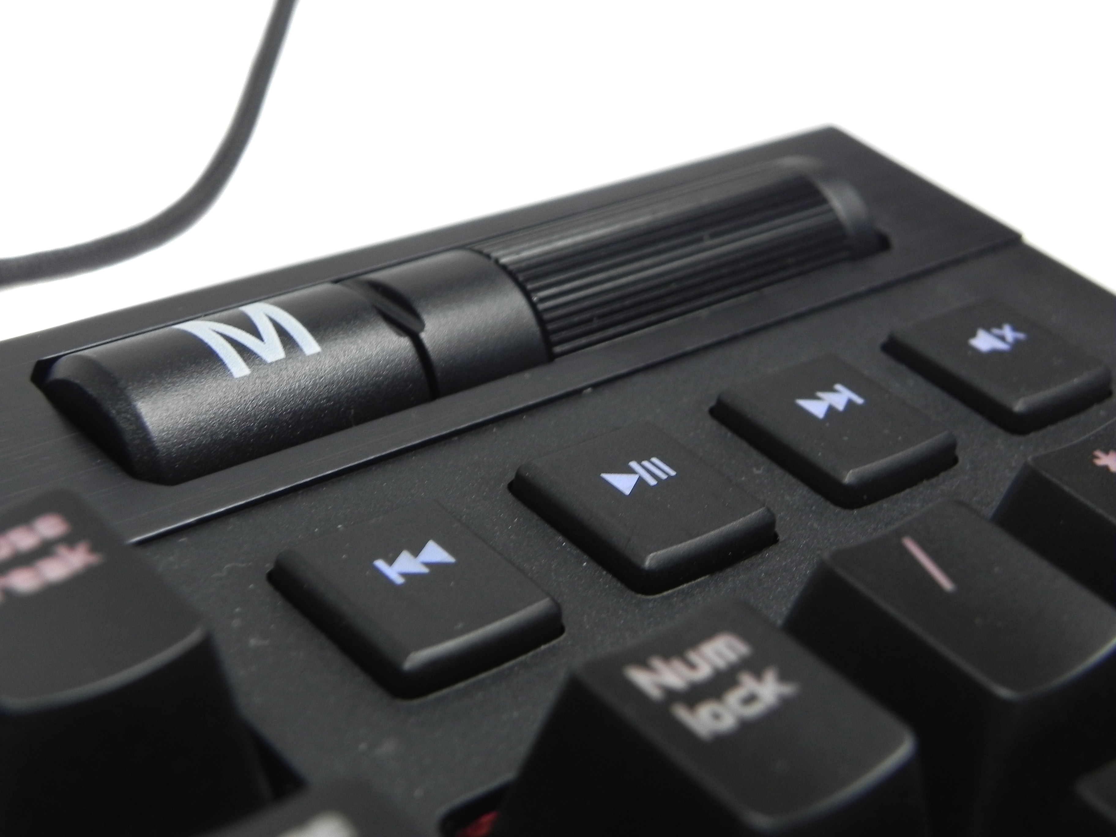 Sąsiadujące guziki odpowiadają kolejno za regulację bocznego oświetlenia składającego się z trzech trybów – jednolitego, falującego i migającego w różnokolorowych barwach. Interesujący jest ostatni przełącznik, który pozwala na włączanie trybu biurowego, gdzie makra są dezaktywowane, lub włączanie trybu do gier, gdzie makra są z kolei aktywowane. To pokazuje dużą wszechstronność klawiatury od Hama. Wyróżniającym zwieńczeniem górnych przycisków funkcyjnych jest 3,5 centymetrowa rolka do regulacji natężenia światła oraz duży przycisk M, który służy za blokadę rolki. Najlepszy w tej klawiaturze jest fakt, że posiada oprogramowanie pozwalające na dużą personalizację.
