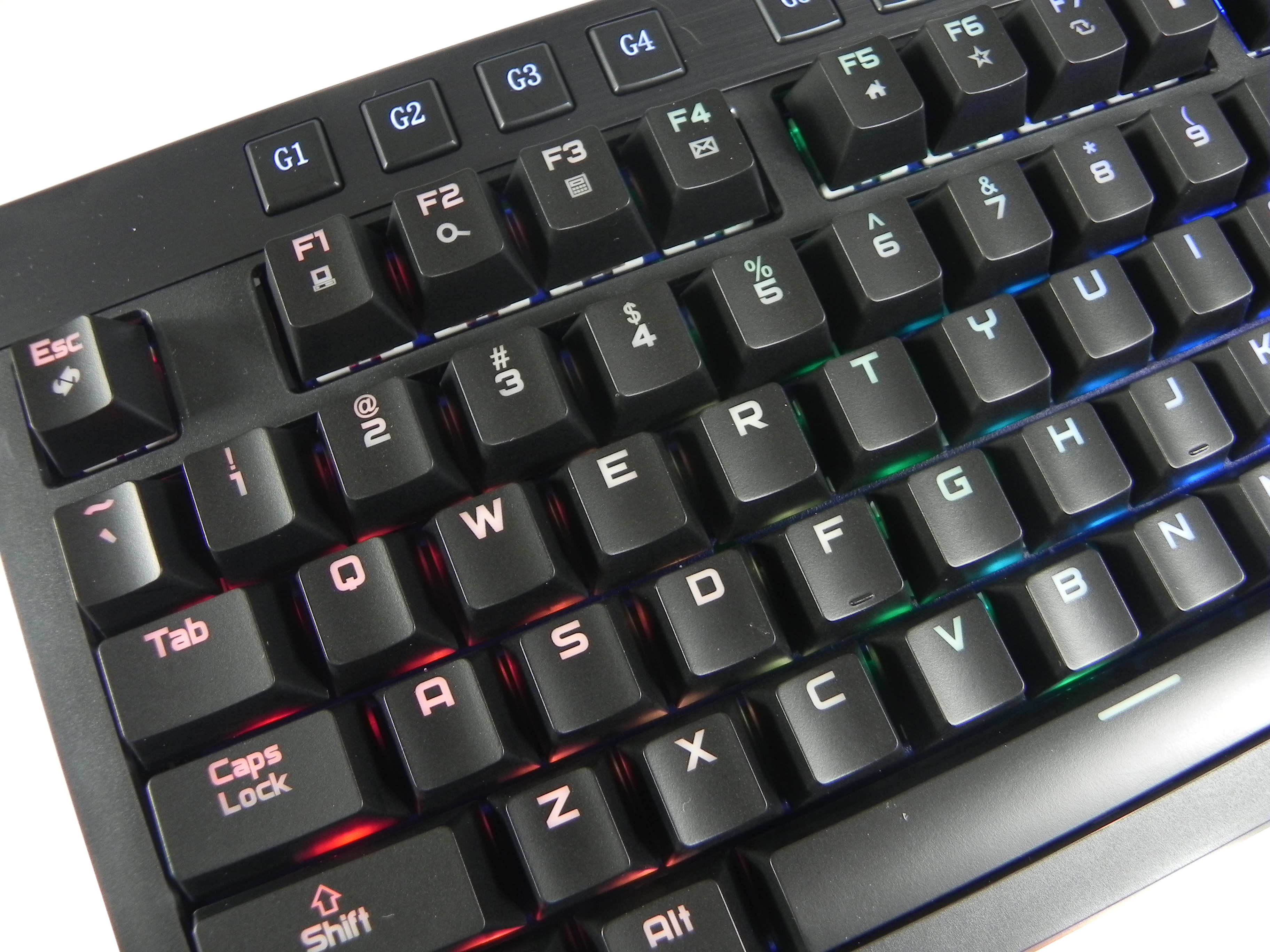 Exodus 900 posiada kilka przydatnych przycisków, tudzież skrótów klawiszowych, które pomagają dokonywać konfiguracji w locie. Generalnie większość zmian dokonuje się dzięki FN, gdzie istnieje możliwość zablokowania przycisku Windows, korzystania z multimediów schowanych pod „efami” czy wyboru trybu podświetlenia dzięki kombinacji FN+Ins. W klawiaturze tej jest również kilka dodatkowych przycisków funkcyjnych u góry. W ich skład wchodzi sześć przycisków do makr, oznaczonych G1-G6 czy przycisk w kształcie błyszczącej lampki do włączania lub wyłączania iluminacji.