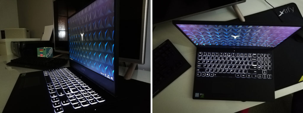 Ostatnim, a przy tym bardzo ważnym elementem, który należy przedstawić jeśli chodzi o wygląd, jest nic innego jak powierzchnia użytkowa składająca się z matrycy i klawiatury oraz touchpada. Zacznijmy od przestrzeni „dedykowanej paluchom”. Każdy, kto często użytkuje różne klawiatury wie, że do każdej nowej należy się przyzwyczaić, by nie produkować „literówek”. Jakież było moje szczęście, gdy zacząwszy pisać na Lenovo Legion Y530 odnalazłam się tu jak w domu. Co przez to rozumiem? Naturalnie pisanie bez zerkania na poszczególne klawisze oraz brak „strzelania literówek”. Naturalnie nie wykonywałam żadnych testów jeśli chodzi o procent pomyłek podczas pisania, ale odważę się napisać, że gdybym takie testy przeprowadziła, poprawność wynosiła by około 98%. Także touchpad spisuje się wzorowo. Często mam problem z touchpadami, które wariują, gdy obsługuje je spoconymi dłońmi (afrykańskie upały w Polsce tego roku sprzyjają…). A tutaj? Dłoń sucha czy mokra – nie było żadnych, ale to żadnych problemów. Także multi-touch działa bez zarzutów. Bardzo podoba mi się również podświetlenie klawiszy. I choć jest tylko białe, to jak dla mnie w zupełności wystarczy. Jest eleganckie i wystarczająco intensywne (i ma dwa stopnie intensywności). Być może wyrosłam już z podświetlenia na wszystkie kolory tęczy.