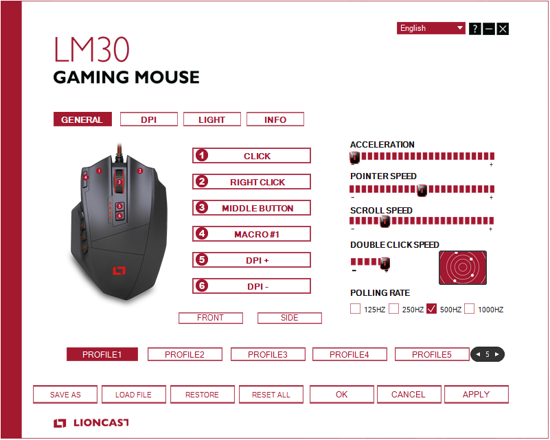 Wrażenia wizualne to jedno, ale zobaczmy, co oferuje myszka Lioncast LM30 w kwestii samego oprogramowania.