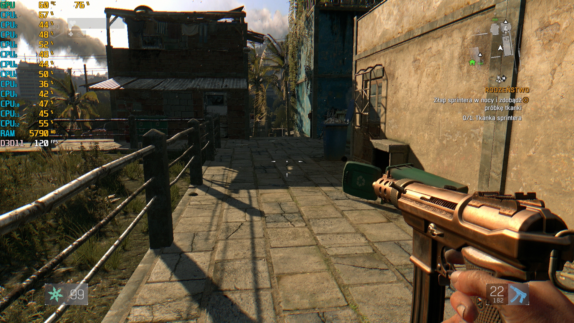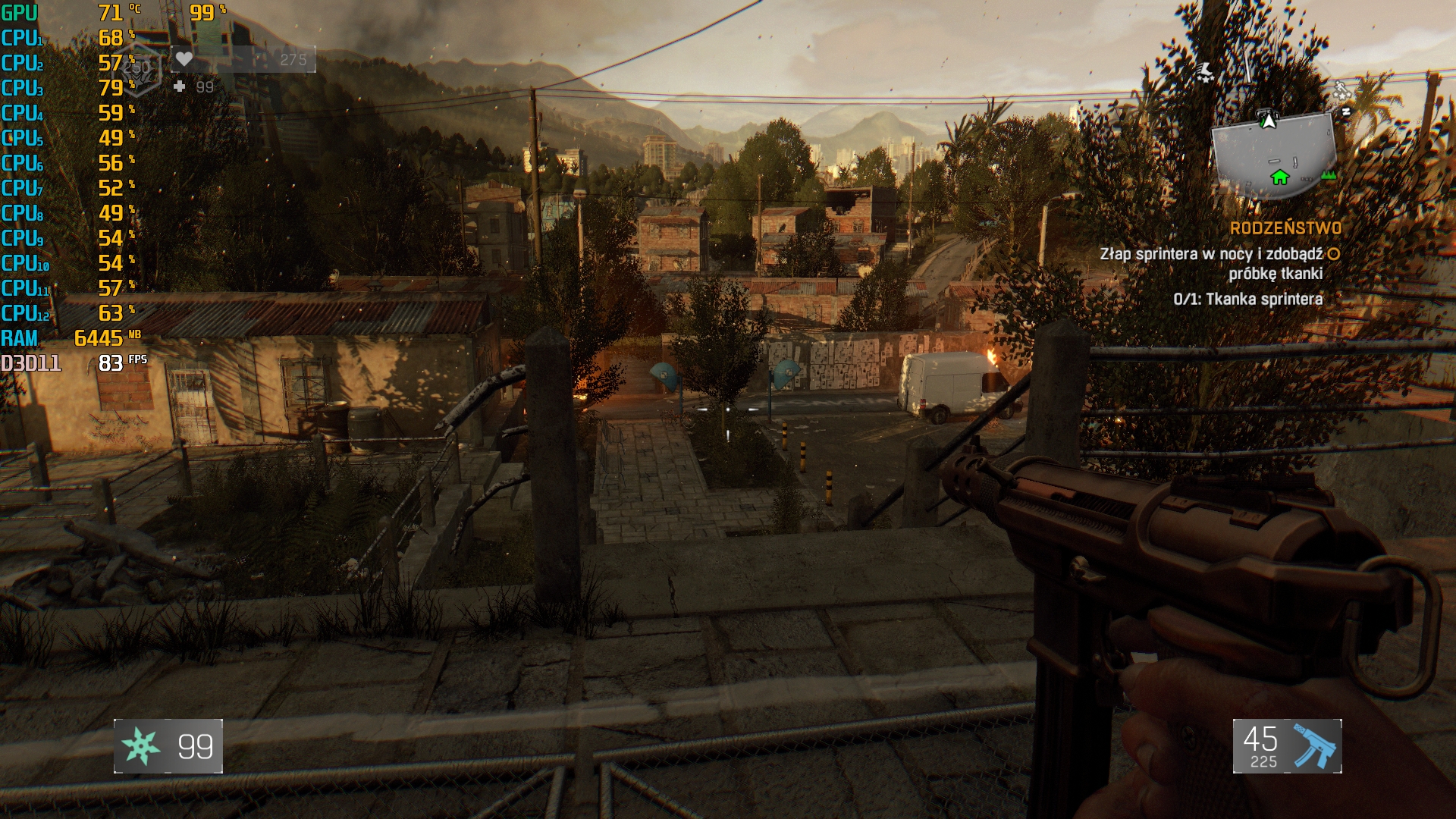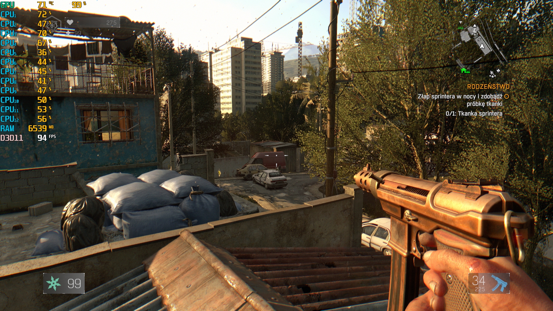 Uciekając przez zombiakami warto aby nic nie umknęło naszym oczom. Każdy spadek fpsów czy przycięcie się gry może poskutkować jej sromotnym zakończeniem. Na szczęście grając w Dying Light na MSI AEGIS 3 nie będzie z tym problemów. Ustawienia Najlepszej Jakości generowały uśrednione 93 fpsy, dobijając nawet do maksymalnych 124 fpsów.