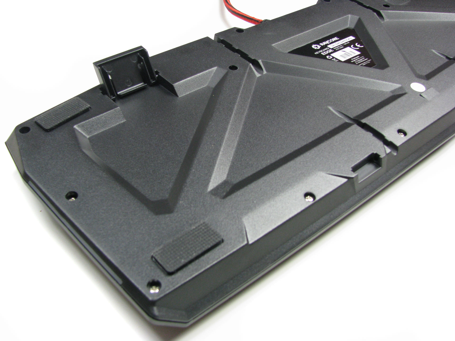 Złego słowa nie mogę natomiast powiedzieć o konstrukcji i wykonaniu Ravcore Edge. Polski producent oddaje w nasze ręce solidny kawałek sprzętu, który dobrze trzyma się blatu biurka. Na przyczepności tracimy nieco po rozłożeniu tylnych nóżek – które nie są gumowane – unoszących klawiaturę pod lekkim kątem. Mimo wszystko ciężar mechanika robi swoje i nadal jest on stabilny.