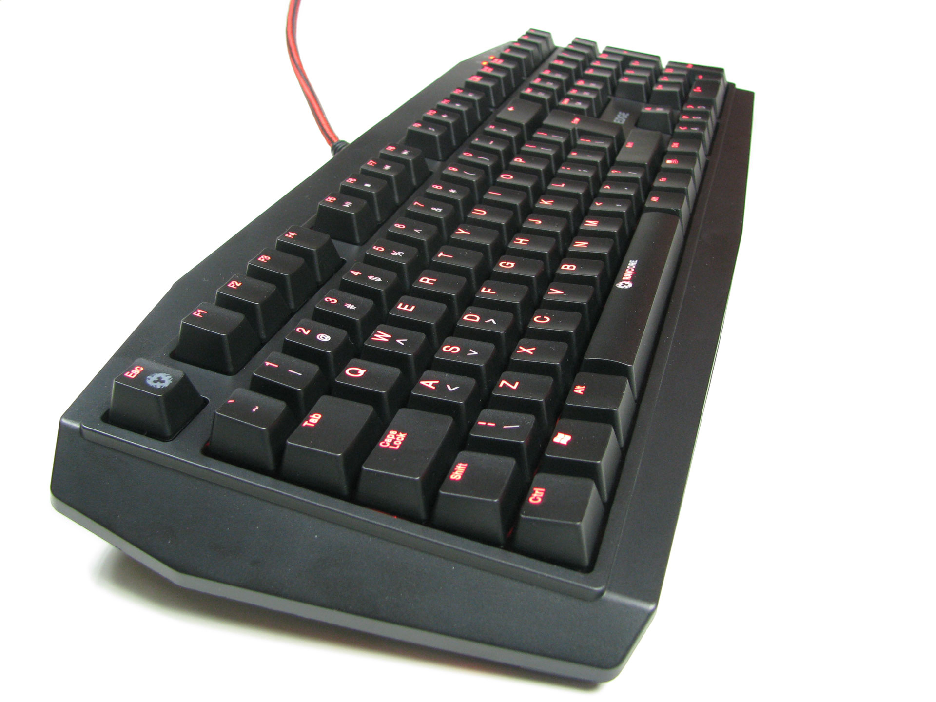 Pierwsze spojrzenie na sprzęt jest jak najbardziej pozytywne – powiem nawet, że klawiatura prezentuje się w realu lepiej niż na grafice z opakowania. Efekt potęguje kontrast pomiędzy czernią urządzenia a czerwienią wnętrza kartonu.