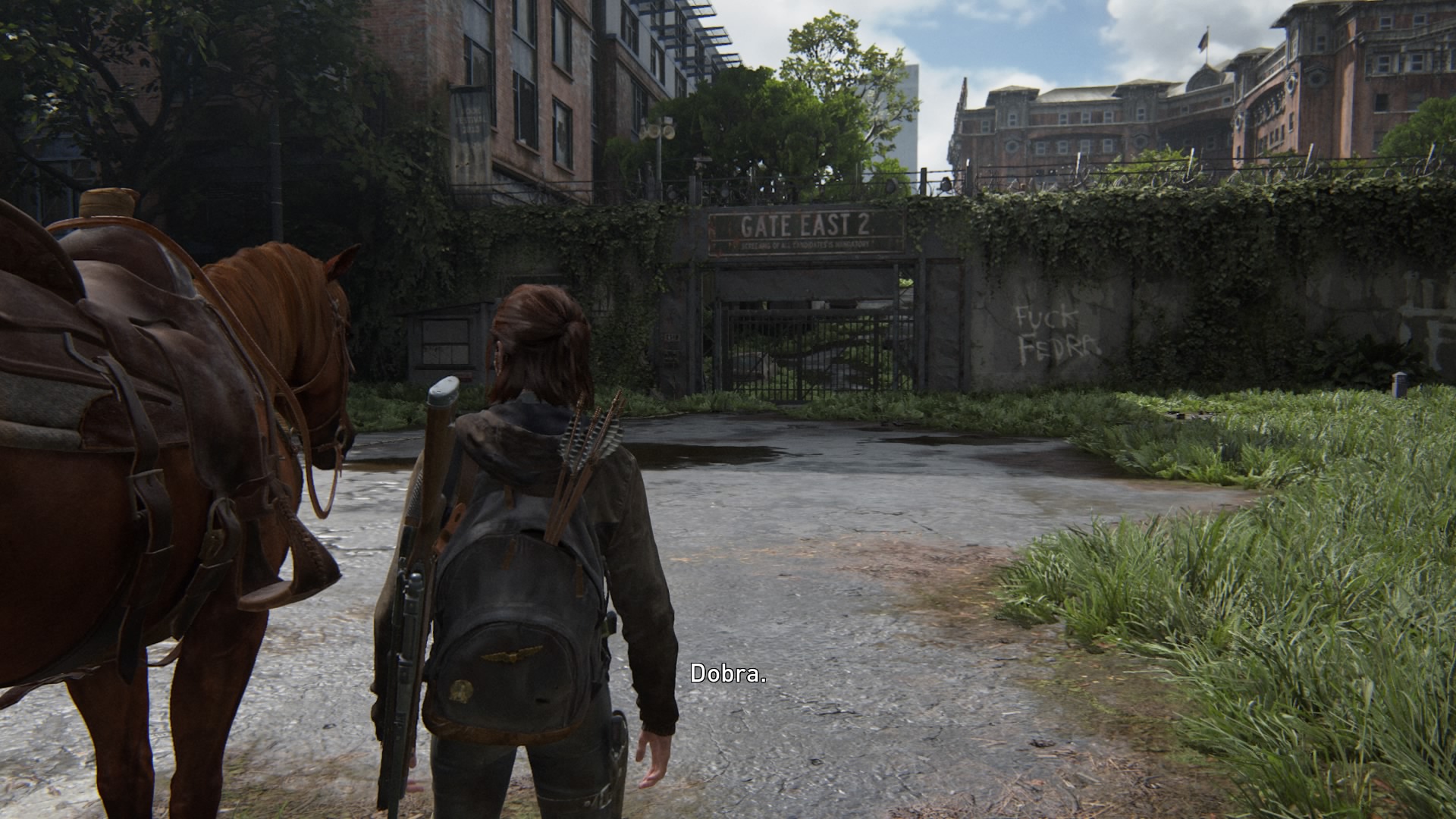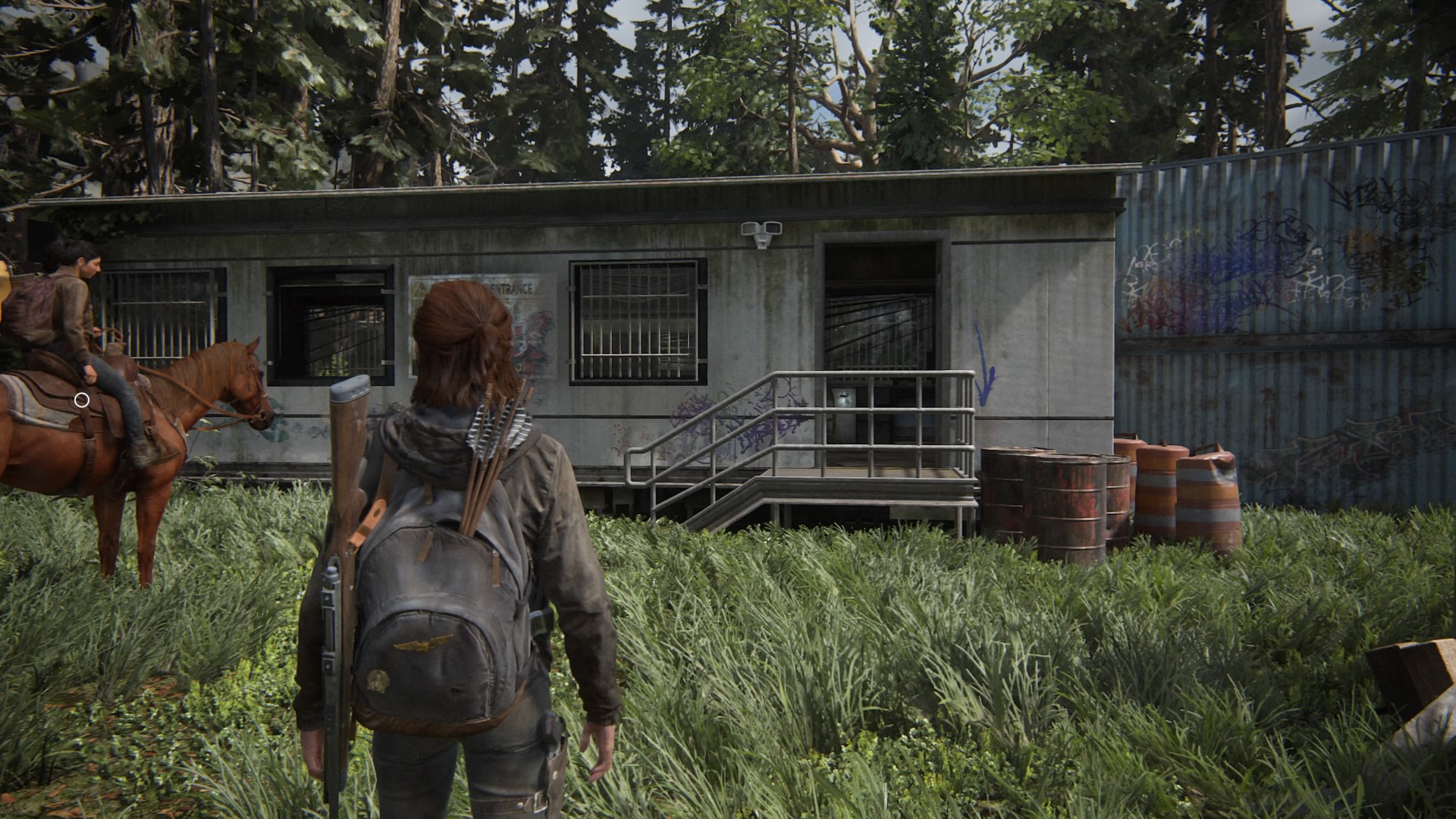 Obok znajduje się barak do którego powinieneś teraz wejść, użyj znajdującego się tam panelu i wpisz kod „0512”, dzięki temu Dina wraz z rumakiem przekroczy bramę. Wsiadamy na konia i mkniemy do wschodniej bramy. Aby ją przekroczyć niezbędne będzie włączenie zasilania, gdy spróbujesz uruchomić generator okaże się, że brakuje paliwa.