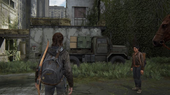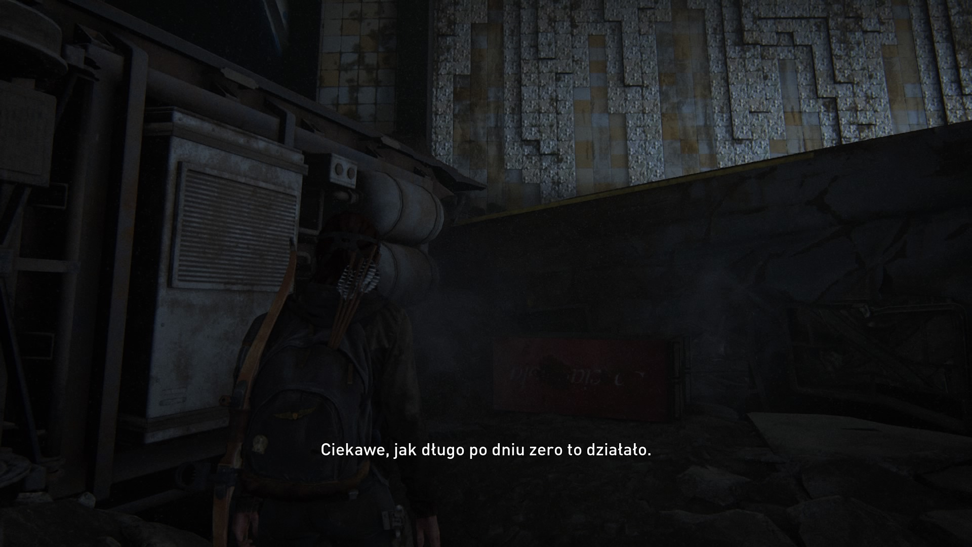 Idź w stronę światła, podsadzając Dinę w miejscu gdzie będzie to niezbędne. Zrzuci Ci ona skrzynie, po której zdołasz się wspiąć. W pewnym momencie zaatakuje was monstrum, a maska Ellie ulegnie zniszczeniu. W tym samym momencie ruszy na Was horda żadna Waszej krwi, nie oglądaj się za siebie i biegnij ile sił w nogach. Gdy ucieczka zakończy się sukcesem, pomóż Dinie przemieścić się do teatru.