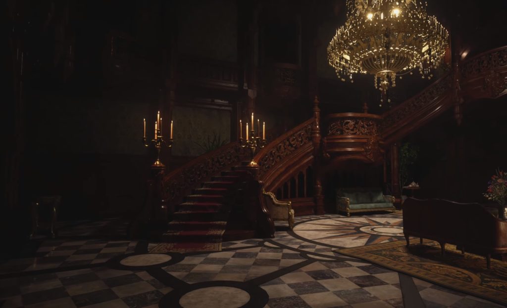 Akcja jakoś specjalnie nie rozkręca się, gdy dochodzimy do holu zamku. Niemniej jednak widoki są całkiem ładne. Na plus zaliczyć można uchwycenie stylu architektury wnętrza, coś pomiędzy klasycyzmem i romantyzmem. Mamy tutaj bardzo wyraźny kontrast względem RE 7, nie ma tu filtra graficznego z efektem sepii, ani głębokiego rozmycia. W nowej części dominuje dbałość o detale i pokazanie przepychu. Graficy na błysk wypolerowali meble i elementy wystroju, a to buduje całkiem naturalny nastrój towarzyszący zwiedzaniu tajemniczych miejsc. Trzeba po prostu powiedzieć, że klimat tworzy gra światła i cieni, a raczej ciemności, do której człowiek z pewną wątpliwością wystawia dłoń.